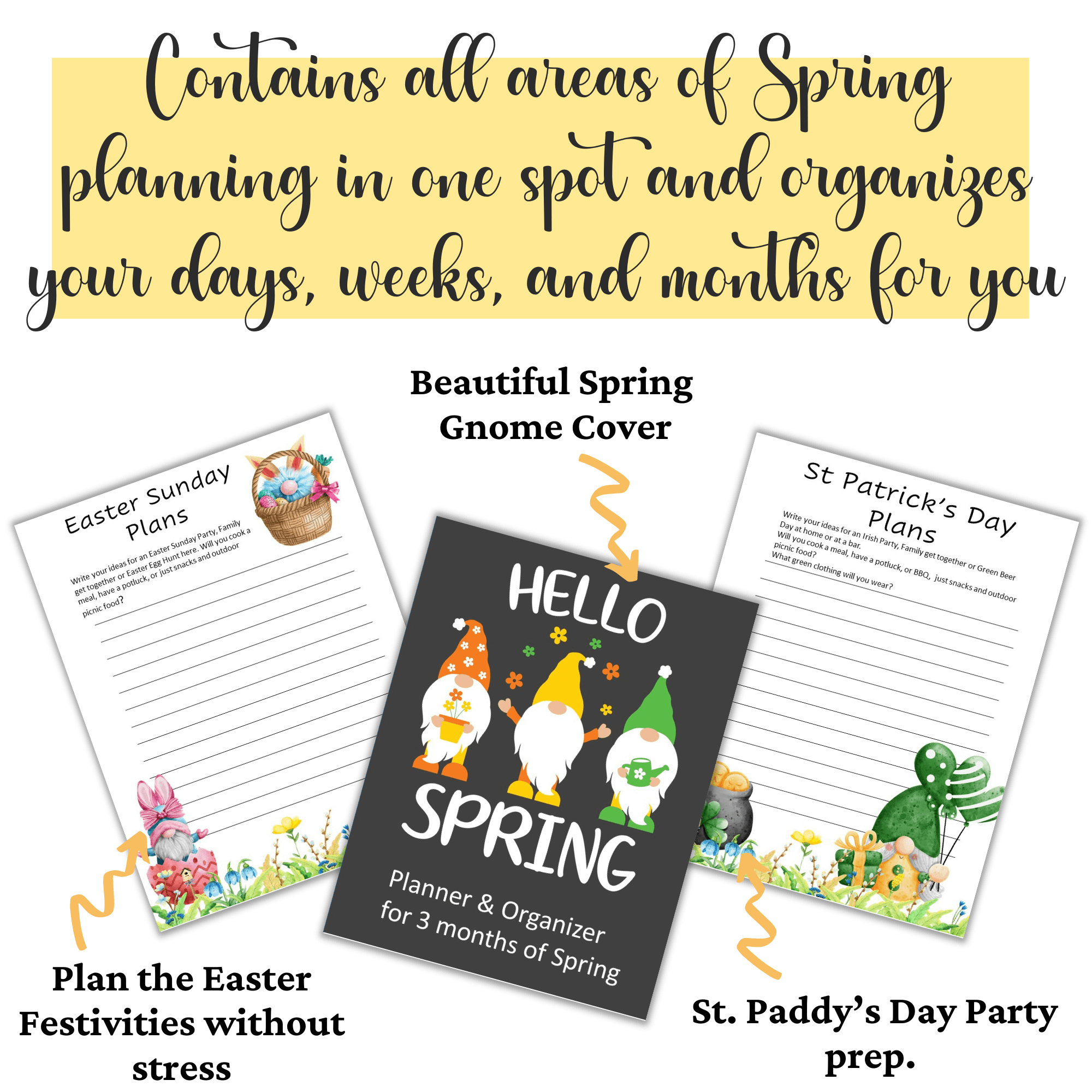 Plan the Spring Festivities without stress with our beautifully organized Hello Spring Gnome Planner and Organizer. This cute Gnome Spring Planner PLR Printable Template offers 37 pages filled with functional layouts, perfect for planning and organizing to make sure you have everything under control.